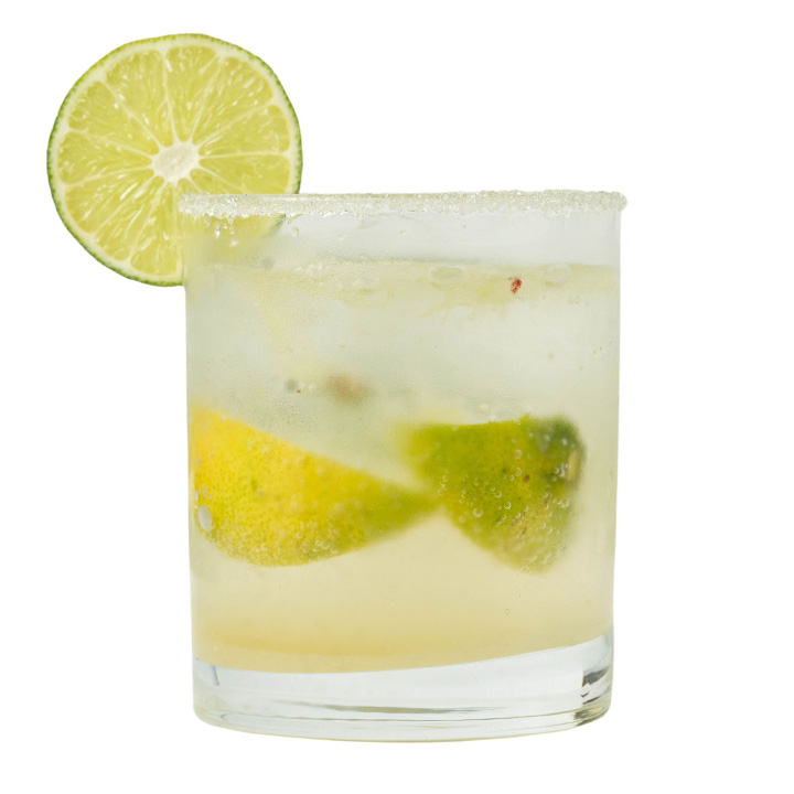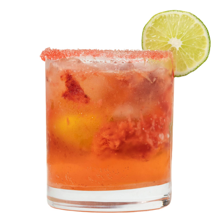 Tequila, limón, fresa, licor de naranja y jarabe natural