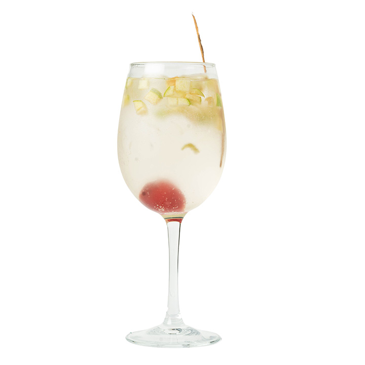 Jarabe natural, Vodka, Sprite, Vino Blanco, Manzana, Piña, jengibre