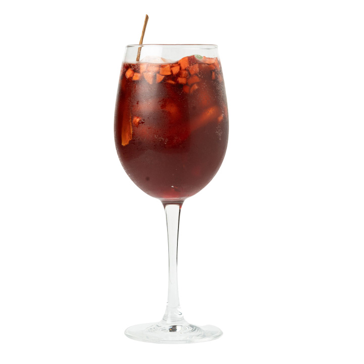 Jarabe natural, jugo de naranja, vodka, sangria, vino tinto, manzanas y piña