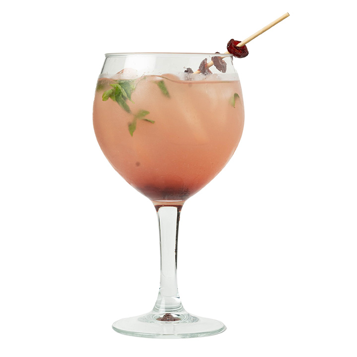 Ginebra, jugo de limón, arándanos, albahaca y agua quina