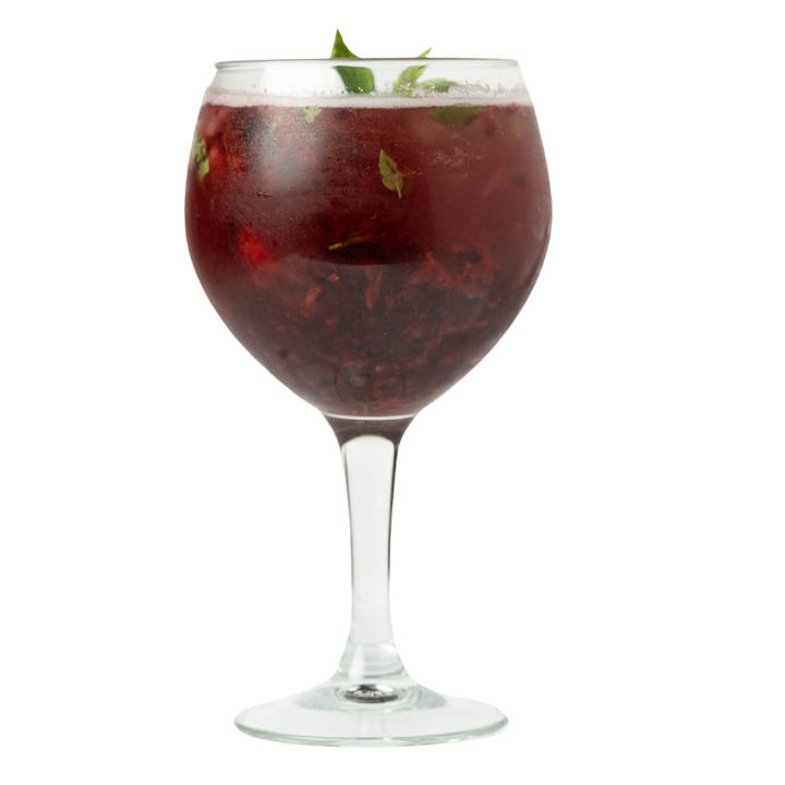 Ginebra, Infusión de moras, fresa, agua tonica, albahaca, granadina.