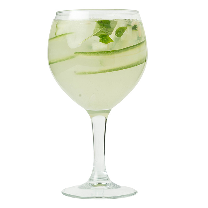 Ginebra, jugo de limón, agua quina, pepino, albahaca