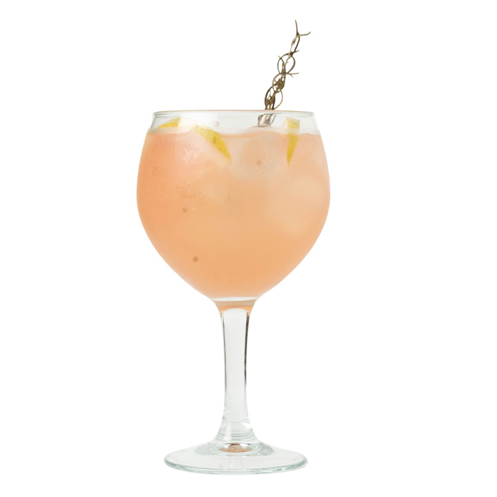 Ginebra, jugo de toronja, cardamomo, romero y agua quina