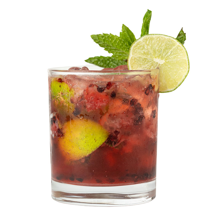 Fresa, mora, azúcar, ron, limón, hierbabuena