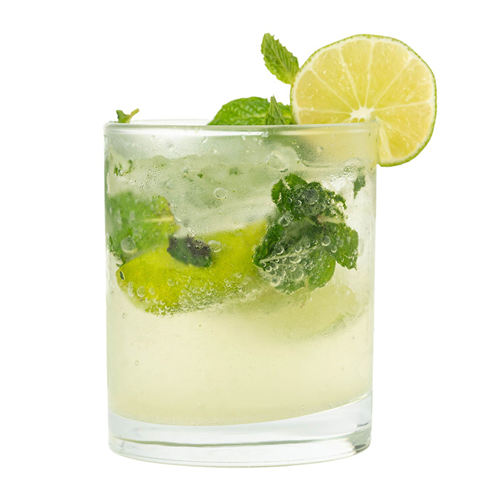 Ron, hierbabuena, limón, azúcar, agua mineral