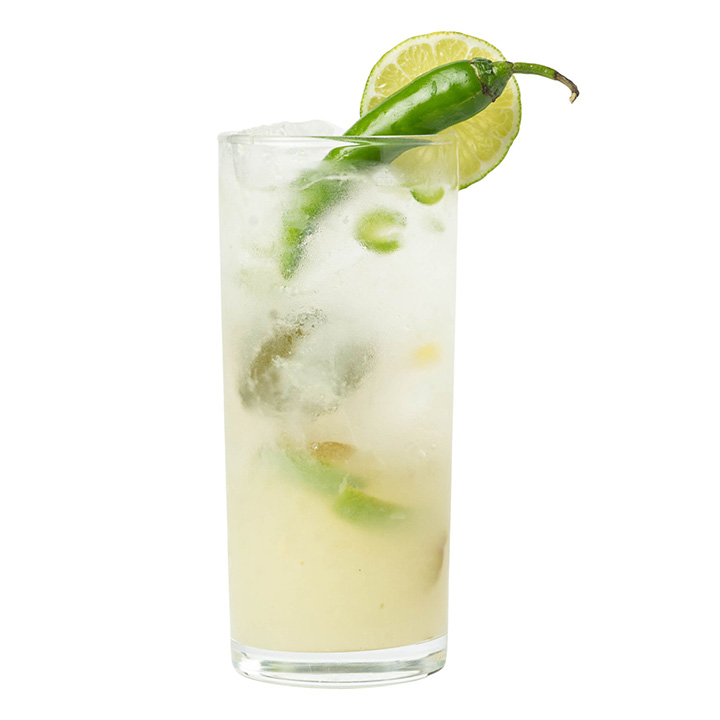 Chile de árbol, Lima kaffir, Vodka + Ron, jengibre y twist de limón